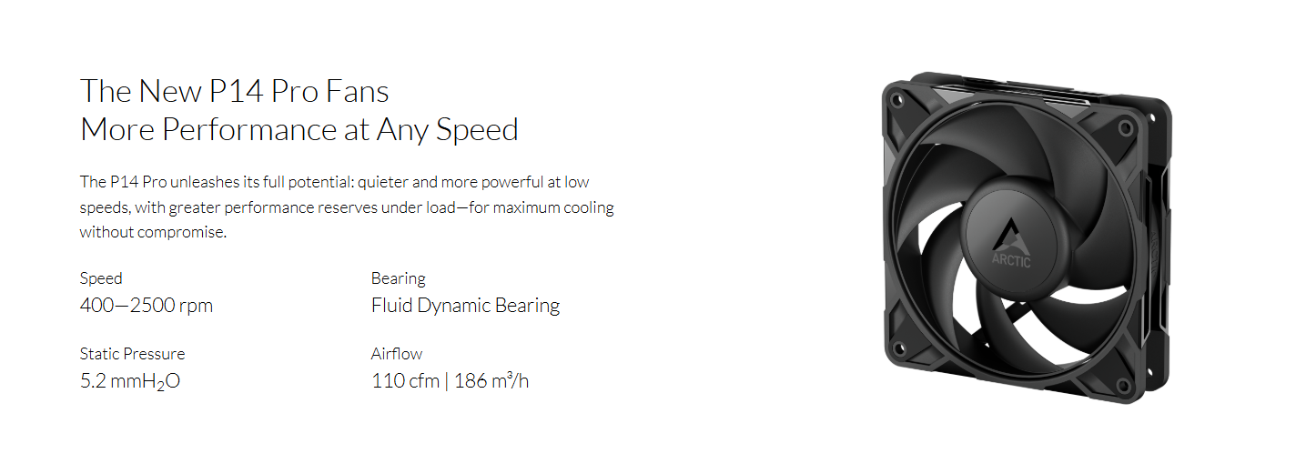 Trang bị sẵn 3 quạt P14 Pro – lưu lượng gió lớn, áp suất tĩnh cao