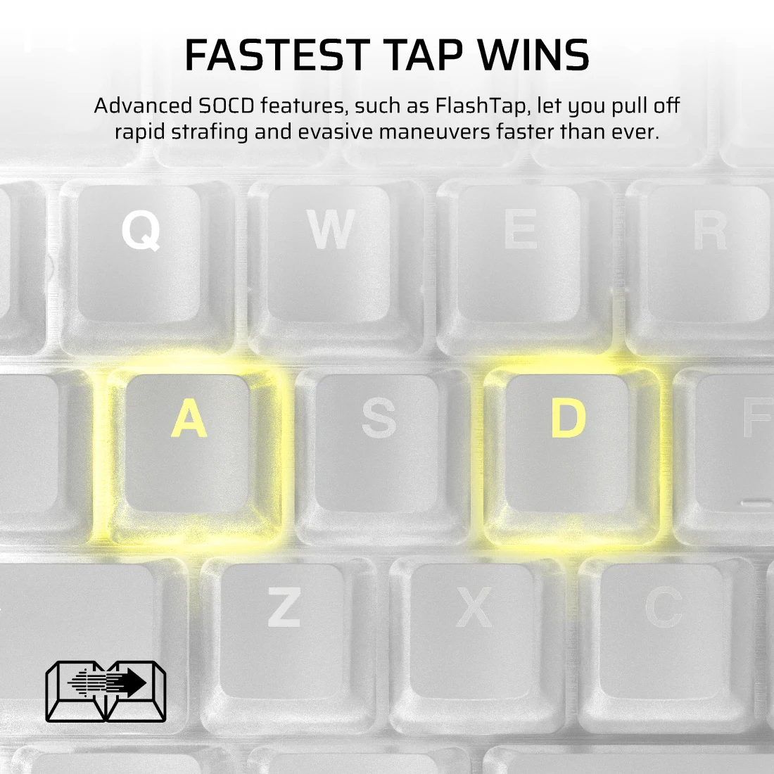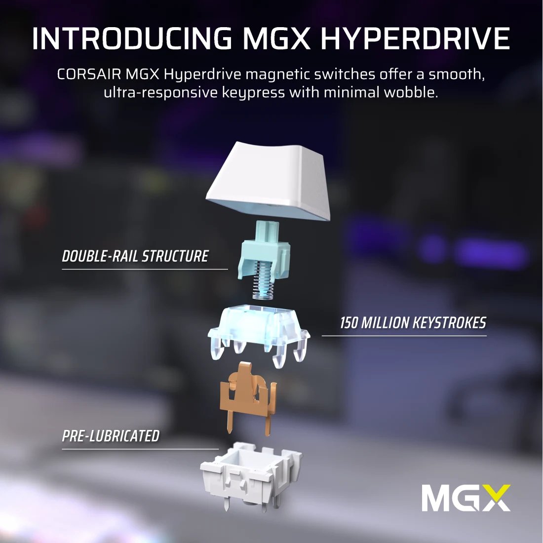 Được trang bị switch từ tính MGX Hyperdrive, bàn phím mang lại tốc độ phản hồi nhanh chóng và cảm giác gõ phím mượt mà. Công nghệ Hall Effect trong switch MGX đảm bảo độ chính xác cao và tuổi thọ lên đến 150 triệu lần nhấn, đáp ứng nhu cầu chơi game cường độ cao của game thủ.