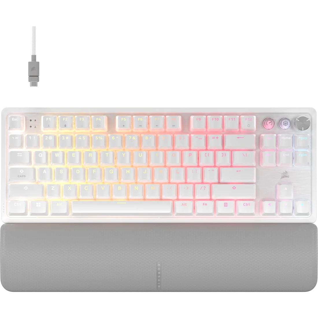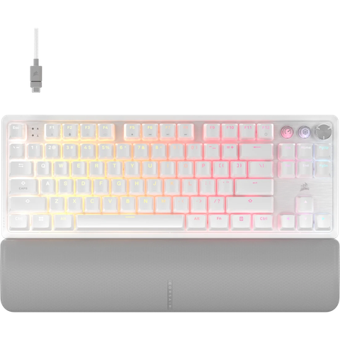 Bàn phím Corsair K70 Pro TKL RGB Rapid Trigger sử dụng kết nối USB-C, đảm bảo truyền tải dữ liệu nhanh chóng và ổn định. Dây cáp có thể tháo rời giúp dễ dàng di chuyển và bảo quản, đồng thời giảm thiểu tình trạng rối dây trên bàn làm việc.