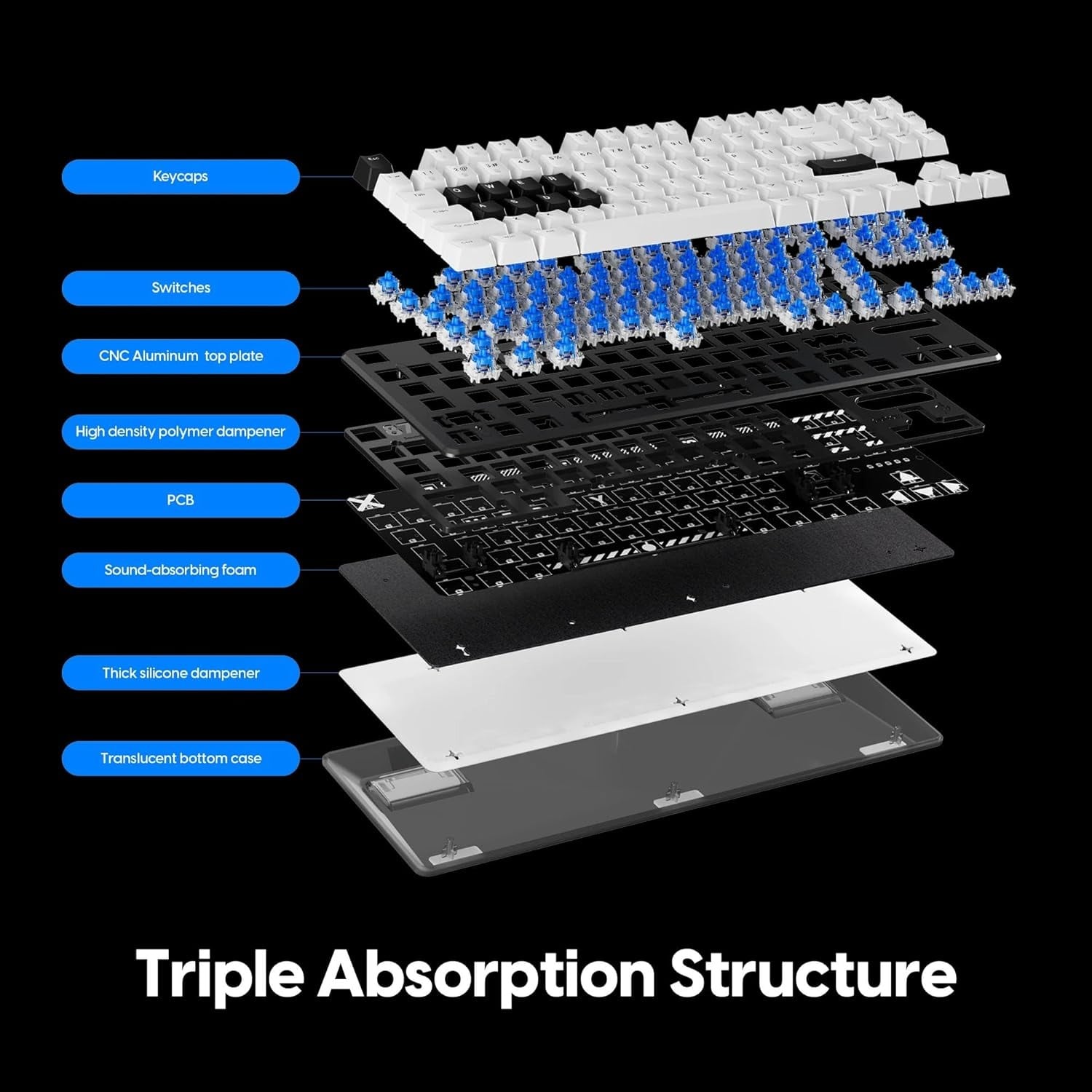 | Layout TKL (80%) Plate nhôm 3 lớp tiêu âm Đáy trong suốt Rapid trigger, Quick tap, Web driver Polling rate: 8000Hz |