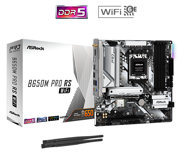 Mainboard Asrock B650M Pro RS Wifi DDR5 có sự góp mặt của Socket AM5 hỗ trợ AMD Ryzen 8000 and 7000 Series Processors Socket AM5 hỗ trợ các bộ xử lý có nhiều nhân và luồng hơn, hỗ trợ PCIe 5.0, đây là công nghệ mới nhất giúp tăng tốc độ truyền tải dữ liệu cho các thiết bị như SSD NVMe và card đồ họa, kết hợp cùng AMD EXPO - công nghệ ép xung RAM DDR5 giúp tăng hiệu năng.