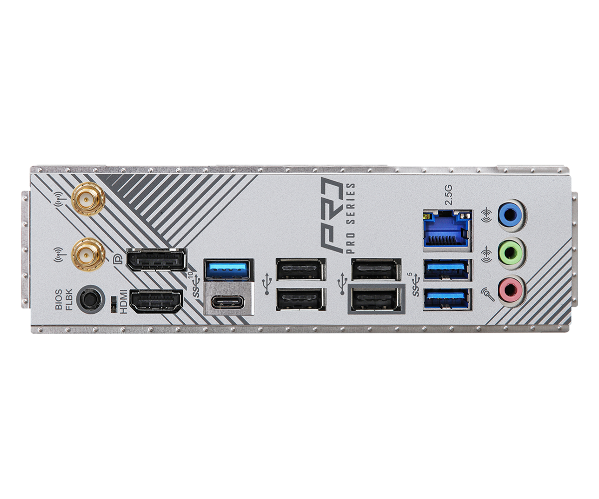 Sản phẩm được trang bị đa dạng cổng kết nối gồm 2 x Antenna Ports 1 x HDMI Port, 1 x DisplayPort 1.4, 1 x USB 3.2 Gen2 Type-A Port (10 Gb/s), 1 x USB 3.2 Gen2 Type-C Port (10 Gb/s), 2 x USB 3.2 Gen1 Ports, 4 x USB 2.0 Ports, 1 x RJ-45 LAN Port, 1 x BIOS Flashback Button, HD Audio Jacks: Line in / Front Speaker / Microphone làm tăng khả năng đa nhiệm của sản phẩm, hỗ trợ sự kết nối nhanh, đa dạng với độ trễ thấp.
