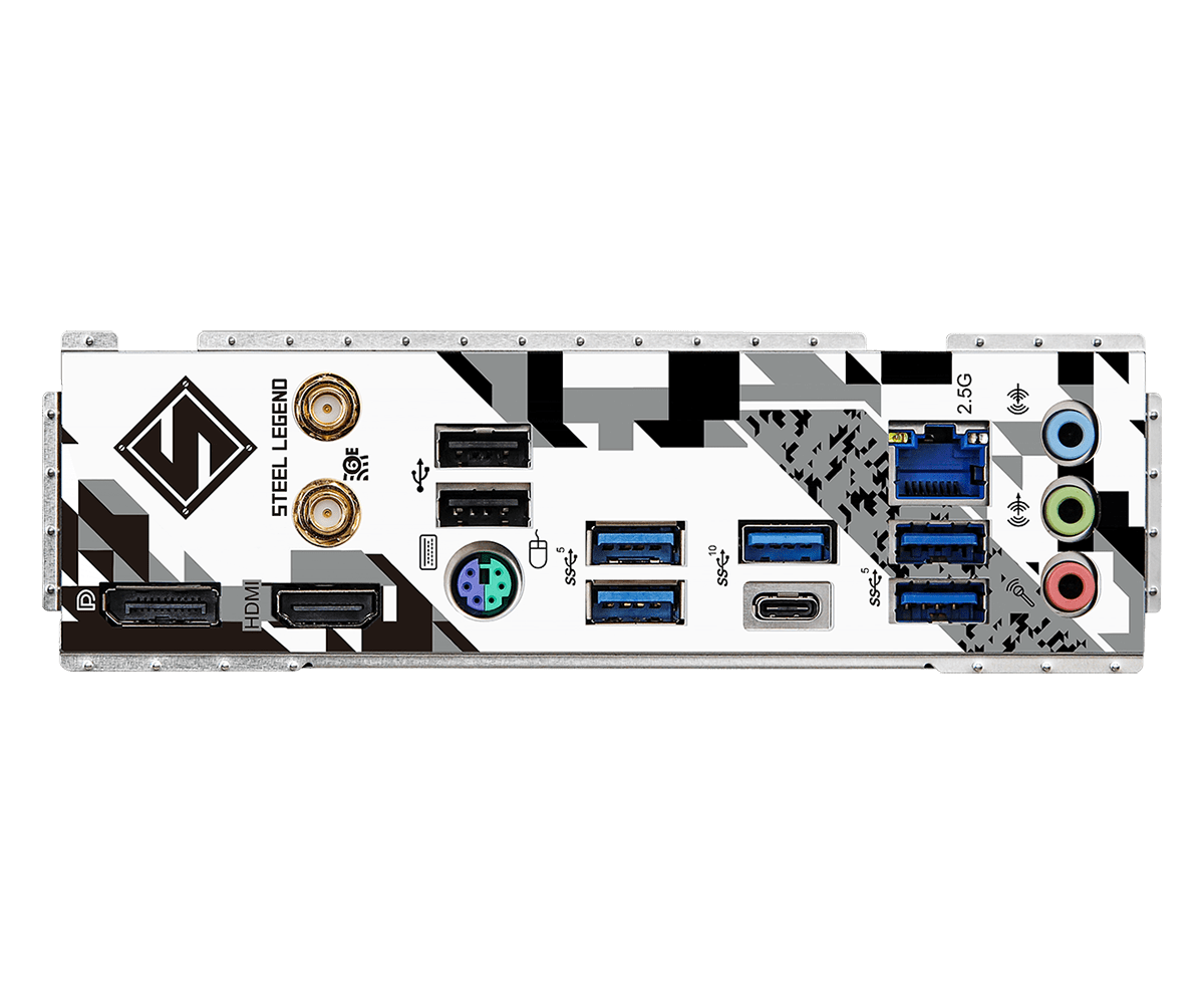 Không giống hầu hết cái gọi là tấm chắn I/O gắn sẵn chỉ được trang trí bằng cách phối màu lạ mắt. B760M Steel Legend Wifi có thiết kế thông minh có nhiều dung sai hơn và cho phép FE chắn IO có thể điều chỉnh được khi lắp đặt. Do đó, khung vỏ case sẽ vừa vặn một cách hoàn hảo mà không gặp bất kỳ một sự cố cơ học nào.