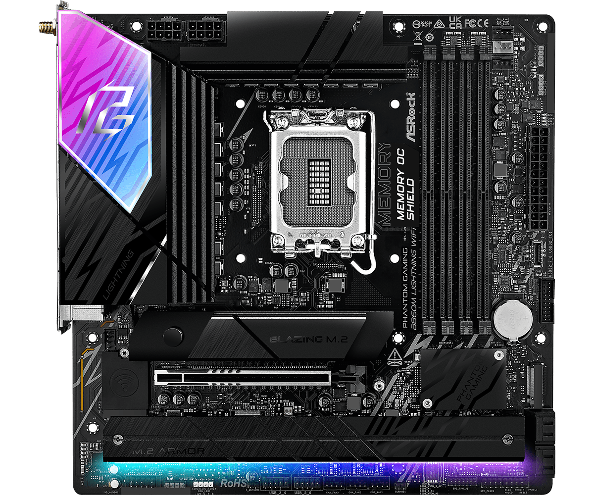 Sản phẩm được trang bị chipset Intel B860 hỗ trợ CPU Intel Core Ultra Series 2 socket LGA1851, cùng công nghệ Hybrid Technology, Turbo Boost Max 3.0, Thermal Velocity Boost và Adaptive Boost. Với tích hợp NPU AI, bo mạch chủ này không chỉ mạnh trong gaming mà còn tối ưu cho tác vụ trí tuệ nhân tạo. Hệ thống RAM DDR5 lên đến 8666+ MHz (OC) và dung lượng tối đa 256GB giúp tăng tốc độ xử lý, mang lại trải nghiệm đa nhiệm mượt mà và hiệu năng toàn diện.