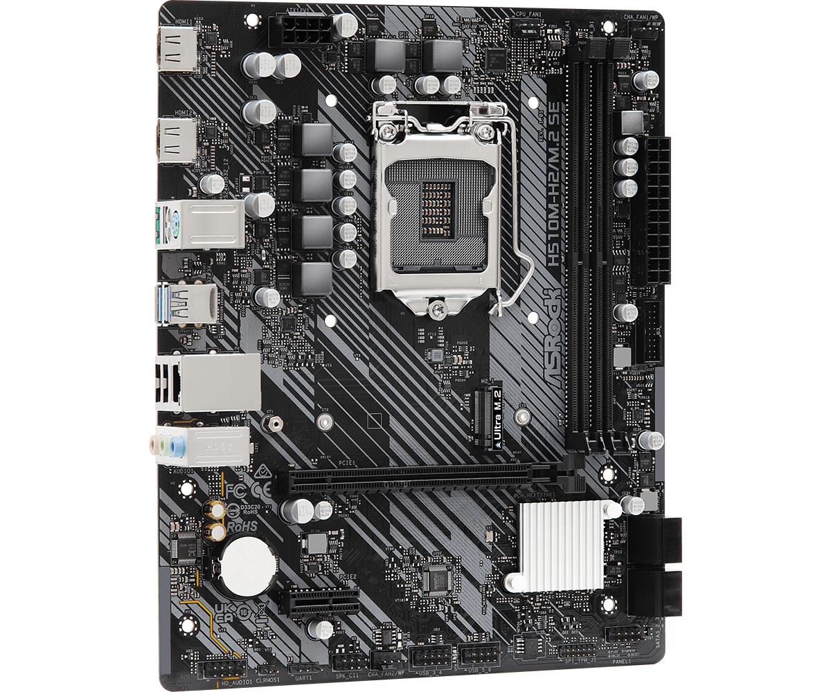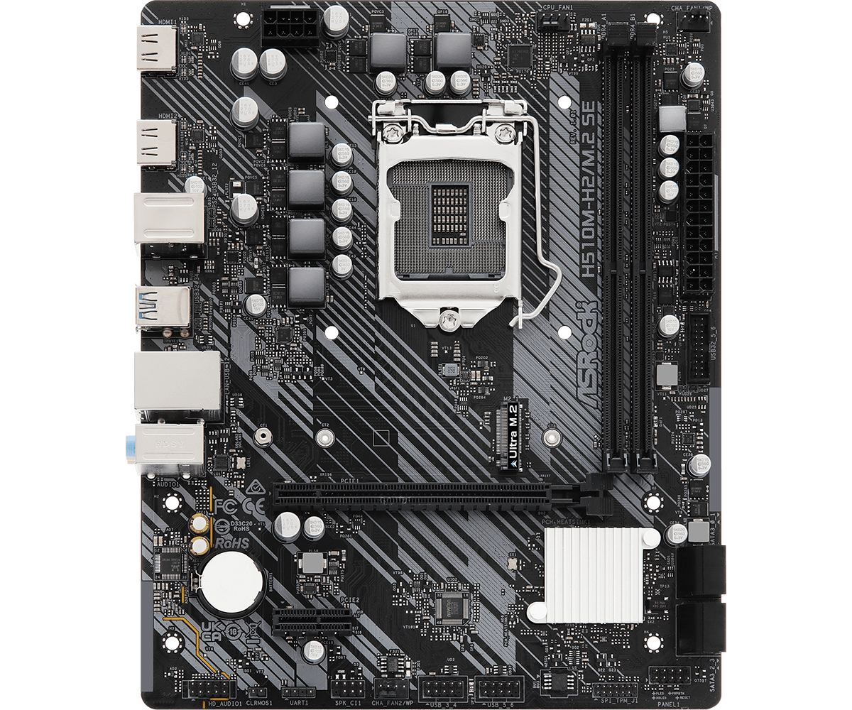Một trong những điểm mạnh đáng chú ý của bo mạch Asrock H510M-H2/M.2 SE chính là khả năng hỗ trợ CPU Intel socket LGA1200, bao gồm các dòng CPU Intel Core thế hệ 10 và 11. Điều này mang lại sự linh hoạt và mạnh mẽ cho người dùng khi có thể chọn lựa giữa nhiều dòng vi xử lý từ i3 đến i9, tùy thuộc vào nhu cầu sử dụng. Khả năng hỗ trợ này không chỉ mang lại hiệu suất xử lý nhanh chóng mà còn tối ưu hoá năng lượng, giúp hệ thống hoạt động ổn định và hiệu quả trong thời gian dài.