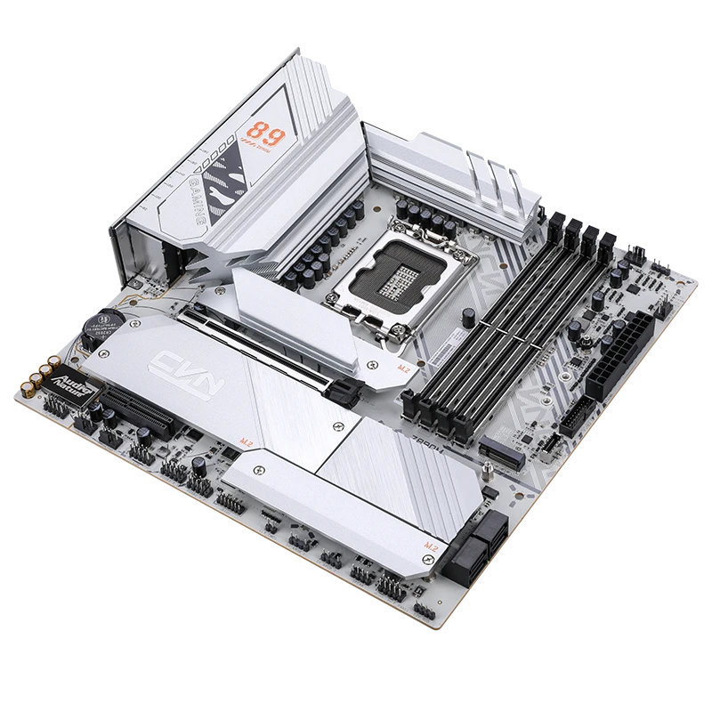 Mainboard Colorful CVN Z890M GAMING FROZEN V20: Với tông màu trắng chủ đạo và hệ thống tản nhiệt ấn tượng, bo mạch chủ này không chỉ là một linh kiện máy tính mà còn là một tác phẩm nghệ thuật