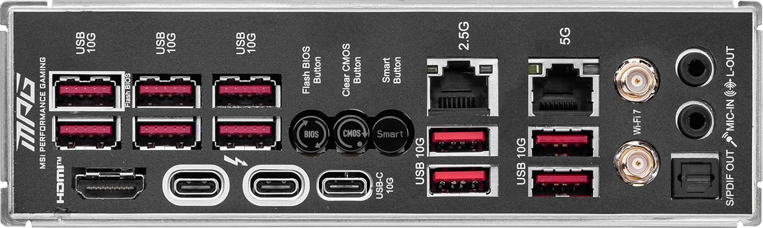 MSI MPG Z890 CARBON WIFI mang đến khả năng kết nối siêu tốc với khe cắm PCIe 5.0 x16, Lightning Gen 5 M.2 và Thunderbolt™ 4. Chuẩn WiFi 7 mới nhất đảm bảo tốc độ kết nối internet cực nhanh và ổn định, giúp bạn tải lên và tải xuống dữ liệu lớn một cách dễ dàng. Ngoài ra, mainboard còn được trang bị 2.5G LAN và Intel® Killer™ 5G LAN, mang đến trải nghiệm mạng mượt mà cho cả game thủ và người dùng chuyên nghiệp.