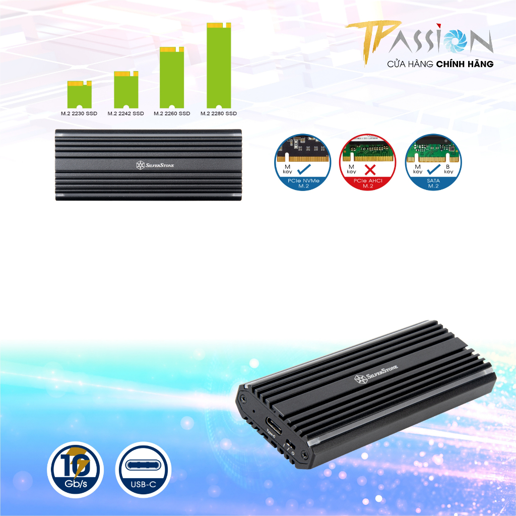 ✅ Box ổ cứng SSD M.2 PCIe NVM Express /Sata SILVERSTONE MS13 có thể tương thích với gần như tất cả các loại SSD NVM.e hiện tại trên thị trường từ dài tới ngắn khác nhau.