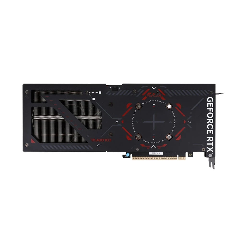 RTX 5060 Ti Colorful có kích thước 301,4 × 120 × 50mm, phù hợp với hầu hết các loại case máy tính phổ biến trên thị trường. Vỏ ngoài màu đen, cùng backplate kim loại chắc chắn không chỉ tạo nên vẻ ngoài ấn tượng mà còn tăng cường khả năng bảo vệ cho các linh kiện bên trong.
