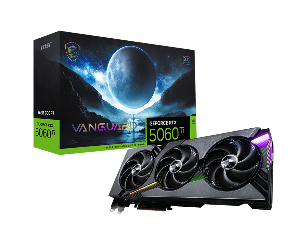 VGA MSI GeForce RTX 5060 Ti VANGUARD SOC 16GB GDDR7 được xây dựng trên nền tảng kiến trúc NVIDIA Blackwell mới nhất, mang đến hiệu năng xử lý đồ họa vượt trội với 4608 nhân CUDA và xung nhịp lên đến 2707 MHz (Extreme Performance). Nhờ công nghệ DLSS 4 cùng khả năng dựng hình bằng AI, bạn sẽ tận hưởng trải nghiệm chơi game mượt mà, hình ảnh sắc nét và chân thực nhất.