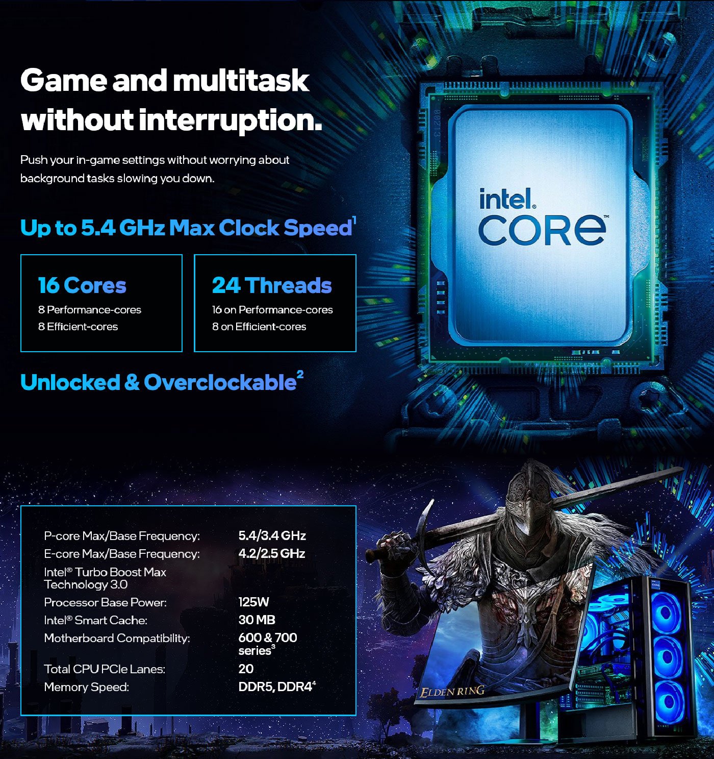 Đánh giá: CPU Intel Core i7-13700K (3.4GHz turbo up to 5.4Ghz, 16 nhân 24 luồng, 24MB Cache, 125W) - Socket Intel LGA 1700/Raptor Lake)Thông số kỹ thuậtCPU Intel Core i7-13700K được trang bị tổng cộng 16 nhân và 24 luồng. Trong đó bao gồm 8 P-Core (nhân hiệu năng cao) dựa trên kiến trúc Raptor Cove và 8 E-Core (nhân tiết kiệm điện) dựa trên kiến trúc lõi Grace Mont. CPU đi kèm với 30 MB bộ nhớ đệm L3 và 24 MB bộ đệm L2 cho tổng số 54 MB bộ nhớ đệm kết hợp. CPU thế hệ thứ 13 của Intel vẫn sử dụng socket LGA 1700 như thế hệ 12 tiền nhiệm nên người dùng cũng không phải lo lắng quá nhiều về việc phải nâng cấp bo mạch chủ nếu muốn sở hữu những chiếc CPU này. Hiệu năngi7-13700K có thể đạt đến ngưỡng xung nhịp là 6.2 MHz với 8 nhân P-core (nhân hiệu năng cao) và đạt 4189 MHz với 8 nhân E-core (nhân tiết kiệm điện). Hơn nữa, theo như một bài test khác trên CPU-Z, điểm chuẩn đơn nhân của chiếc CPU đạt 1010 điểm, rất nhanh và vượt xa những lần rỏ rỉ thông tin trước đây chúng ta đã thấy. Điểm chuẩn đa nhân thì ít ấn tượng hơn chút với số điểm là 11877 điểm. i7-13700K sẽ đạt được mức hiệu năng rất vượt trội khi được trang bị cùng với RAM DDR5, tương tự với thế hệ thứ 12 trước đó nhưng lần này thậm chí còn mạnh mẽ hơn. Bởi có một phát hiện mới khi sử dụng Intel Core i7 13700K chạy trên cùng một nền tảng nhưng với biến thể RAM DDR5 cùng Z690 Steel Legend của AsRock và đạt điểm số cao hơn nhiều về hiệu năng đa nhân. Có thể thấy CPU chạy trên mức xung nhịp 5.3 GHz ở tất cả các nhân và mang lại điểm đa luồng tối đa là 19811 điểm, tăng 20% so với khi sử dụng RAM DDR4. Tương thíchĐược biết rằng dòng CPU Core thế hệ thứ 13 của Intel sẽ được phát hành vào nửa cuối năm nay. Intel hiện đã xác nhận rằng loạt CPU này sẽ sử dụng quy trình Intel 7, cải thiện hiệu năng rất nhiều với tối đa là 24 nhân và 32 luồng, tức là 8 nhân P-core + 16 nhân E-core, với khả năng ép xung vượt trội, tương thích với Nền tảng Core thế hệ thứ 12. Các đối tác của Intel cũng sẽ phát hành bo mạch chủ Z790 cùng lúc và các bo mạch chủ dòng B760 và H710 có thể được tung ra thị trường vào năm sau, tạo cho người dùng thêm nhiều sự lựa chọn hơn trong việc chọn lựa bo mạch chủ cho cả 2 thế hệ.