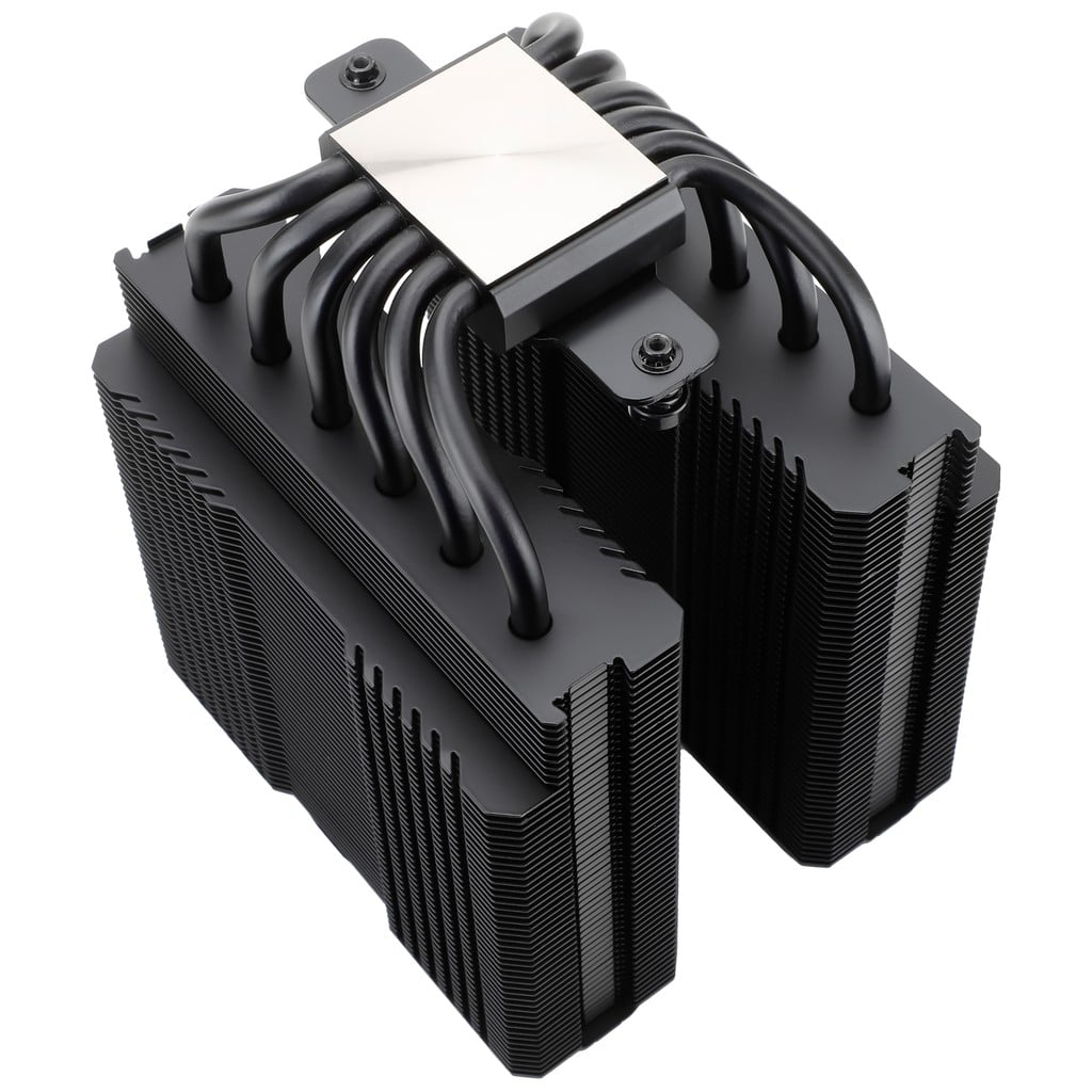 - Khối tản tháp đôi hoàn thiện cao cấp với 53 lá nhôm trên mỗi tháp cho diện tích tiếp xúc lên đến 9600cm2 và chiều cao chỉ 157mm dễ dàng tương thích với nhiều mẫu vỏ case.