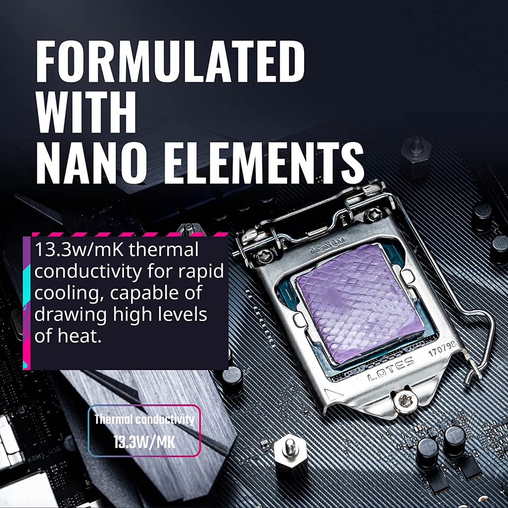 🌟 Công thức từ các hạt Nano Elements – mang lại độ dẫn nhiệt 13.3W/mK và 15.3W/mK giúp làm mát nhanh chóng, phù hợp với nhiều loại thiết bị và linh kiện điện tử.