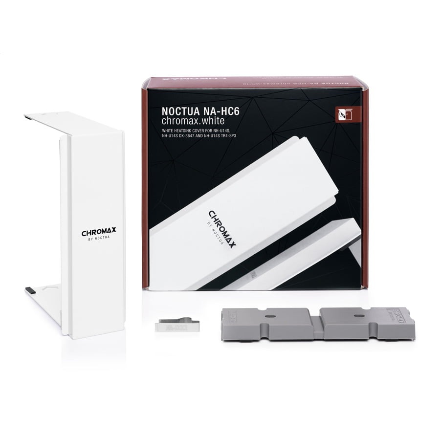 Phụ kiện máy tính nắp tản nhiệt màu NA - HC6 Chromax . Được làm từ nhôm chất lượng cao với lớp hoàn thiện sơn tĩnh điện màu trắng, chúng cho phép người dùng mang đến cho máy làm mát một vẻ ngoài bóng bẩy như tuyết trắng như ở nhà trong các phiên bản toàn màu trắng hoặc đen và trắng. Nhờ cài đặt dễ dàng, đơn giản, việc thay đổi ngoại hình của bộ tản nhiệt Noctua của bạn chỉ mất vài phút và thậm chí không yêu cầu tháo nó ra khỏi CPU.