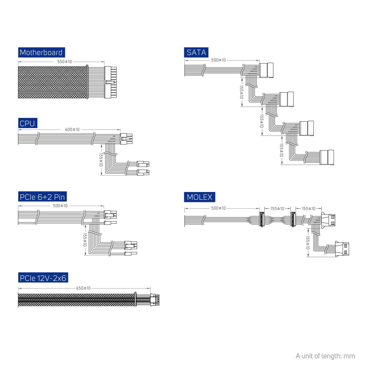 Với kích thước 140×150×86 mm, bộ nguồn này phù hợp với hầu hết các thùng máy ATX tiêu chuẩn. Dây cáp full đen giúp dễ dàng đi dây, tạo không gian gọn gàng hơn bên trong case.