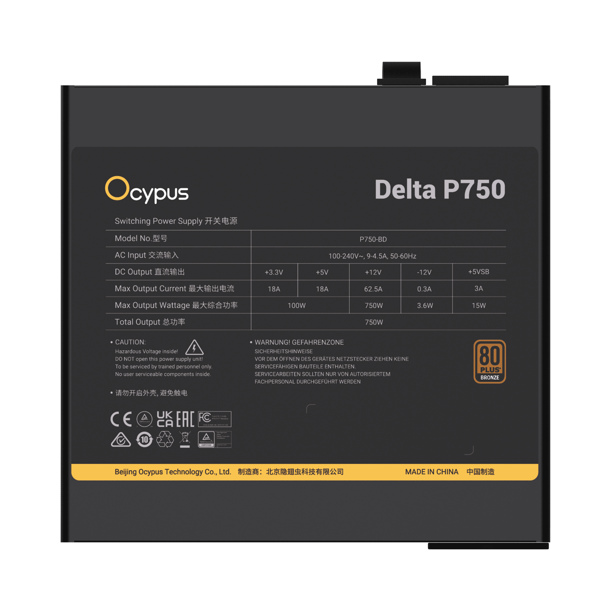 Nguồn Ocypus Delta P750 750W 80 Plus Bronze Delta-P750 – Hiệu suất ổn định, sẵn sàng cho dàn PC hiện đại