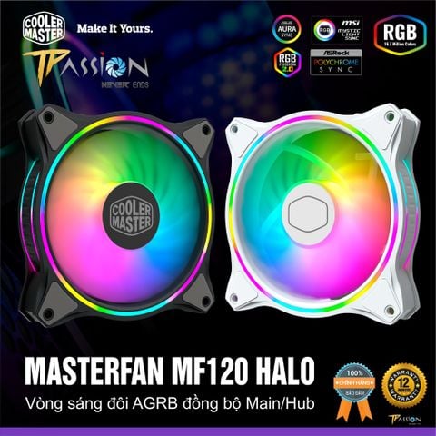 Masterfan MF120 HALO là sản phẩm quạt tản nhiệt với kích thước 12cm có hiệu ứng LED ARGB đa màu chuyên thổi làm mát và hút khí nóng cho PC của bạn với tốc độ lên đến 1.800 RPM.