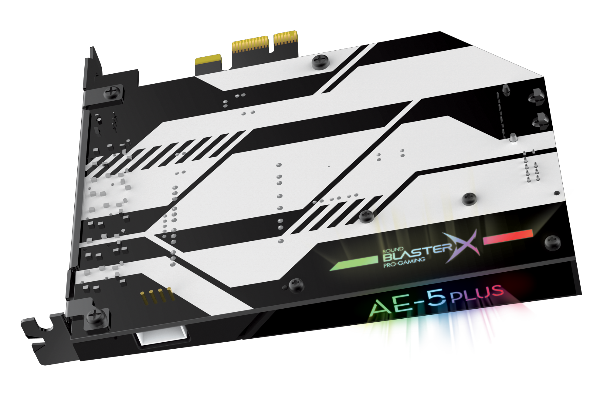 Sound Card Creative Sound BlasterX AE-5 Plus là card âm thanh PCIe được thiết kế chuyên biệt cho game thủ, kết hợp giữa chất lượng âm thanh cao cấp và tính thẩm mỹ ấn tượng. Với bộ chuyển đổi DAC mạnh mẽ đạt Dynamic Range 122 dB và THD+N 0.00032%, AE-5 Plus đảm bảo mọi âm thanh trong game được tái tạo chi tiết và trung thực. Điểm nhấn là bộ khuếch đại tai nghe Xamp rời hỗ trợ tai nghe lên đến 600Ω và hệ thống đèn Aurora RGB tích hợp, biến card âm thanh này thành trung tâm của cả hiệu năng và phong cách cho dàn máy gaming của bạn.