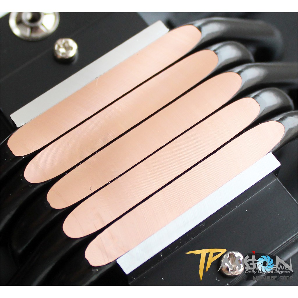 - Tản nhiệt được trang bị 5 ống đồng Ф6mm cùng đế tiếp xúc bằng đồng tối ưu dẫn truyền nhiệt cho CPU. TDP vượt trội lên đến 220W