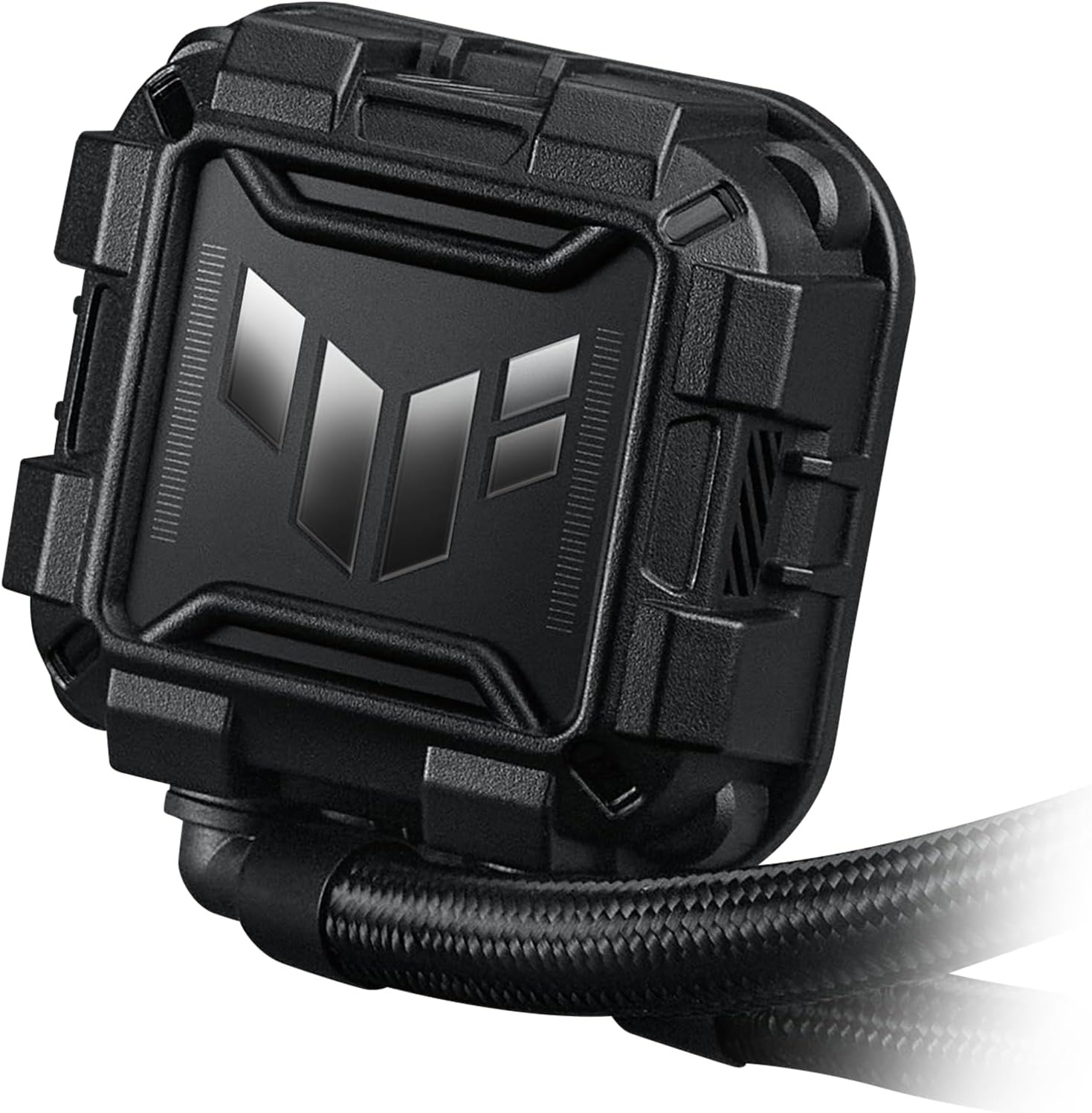 - Trên cùng là lớp vỏ bảo vệ mang đậm phong cách TUF Gaming kèm theo Logo TUF phát sáng có thể đồng bộ ARGB.