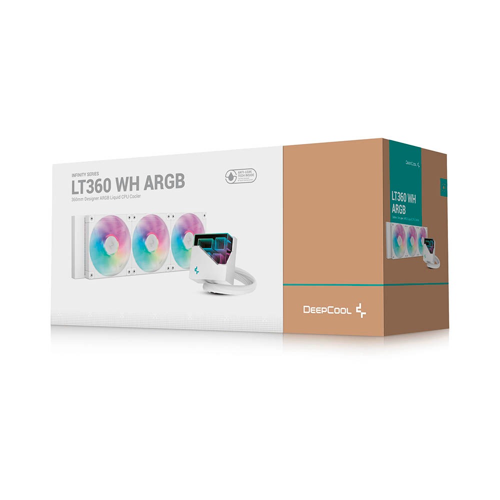 Tản nhiệt nước AIO Deepcool LT360 WH ARGB R-LT360-WHAMNC-G-1 không chỉ làm mát hiệu quả mà còn mang đến vẻ đẹp ấn tượng cho hệ thống của bạn. Block CPU được trang bị đèn LED ARGB với hiệu ứng ánh sáng đa dạng, có thể đồng bộ với các linh kiện khác thông qua phần mềm điều khiển. Quạt tản nhiệt cũng được tích hợp đèn LED ARGB, tạo nên một tổng thể hài hòa và rực rỡ.