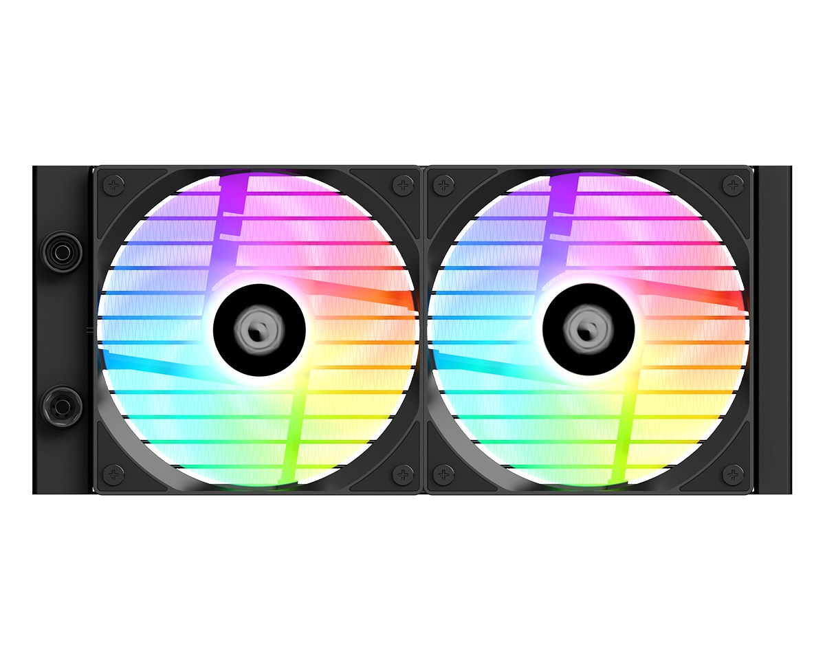 Cả mặt bơm và quạt đều được tích hợp LED ARGB có thể tùy biến màu sắc và hiệu ứng ánh sáng thông qua phần mềm hoặc hub điều khiển từ mainboard. Đèn LED cho ánh sáng sống động, làm nổi bật toàn bộ case, phù hợp với các build có chủ đề RGB hoặc tông tối mạnh mẽ.