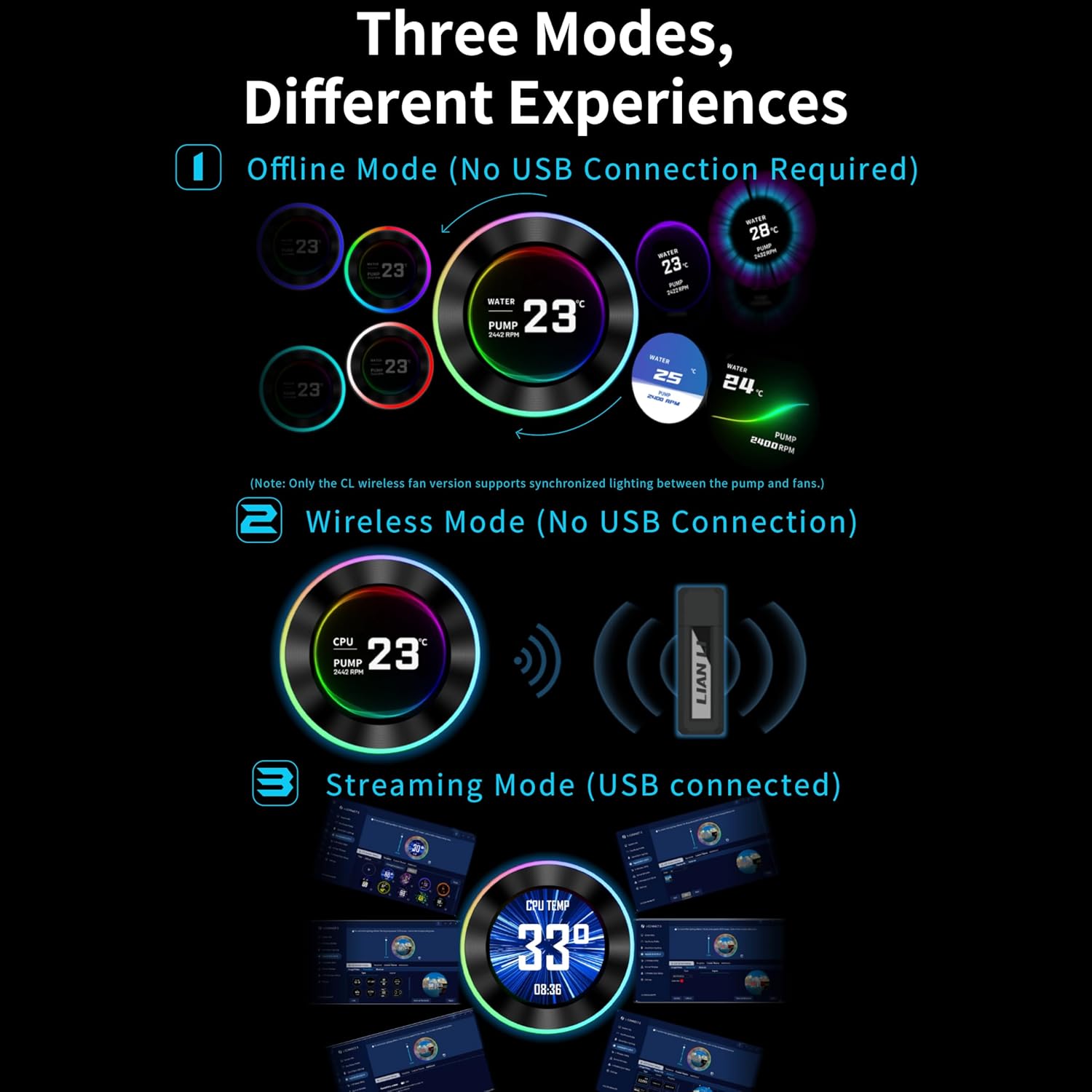 TẢN NHIỆT NƯỚC AIO LIAN LI HYDROSHIFT II LCD-C 360TL (KÈM 3 QUẠT TL WIRELESS)