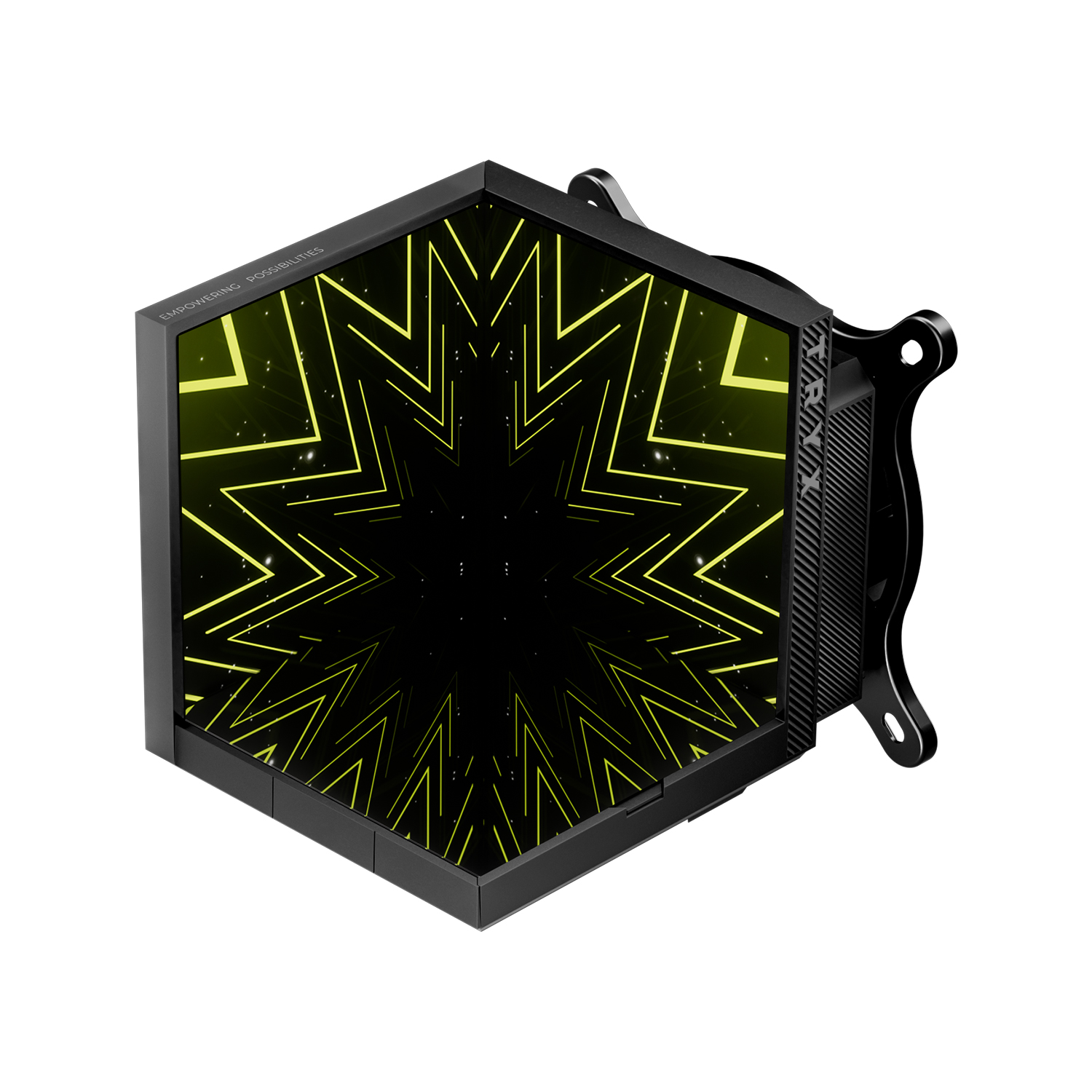 Điểm nhấn kiến tạo nên sự khác biệt hoàn toàn cho sản phẩm này chính là hệ thống màn hình kép Dual-Screen độc bản với kích thước lên đến 4.3 inch x 2. Không giống như các màn hình vuông vức đơn điệu thường thấy, thiết kế này mở ra một không gian hiển thị cong 3D cực kỳ ấn tượng, cho phép người dùng quan sát thông số hệ thống hoặc hình ảnh cá nhân hóa từ mọi góc nhìn. Tấm nền IPS cao cấp với độ phân giải 720 x 720 px cho mỗi màn hình mang lại độ sắc nét tuyệt đối, kết hợp cùng khả năng hiển thị 16.7 triệu màu, giúp tái tạo hình ảnh sống động và rực rỡ nhất. Đây không chỉ là một thiết bị làm mát, mà còn là một tác phẩm nghệ thuật công nghệ, biến khoang máy tính của bạn trở thành tâm điểm của sự chú ý với các hiệu ứng thị giác chưa từng có.