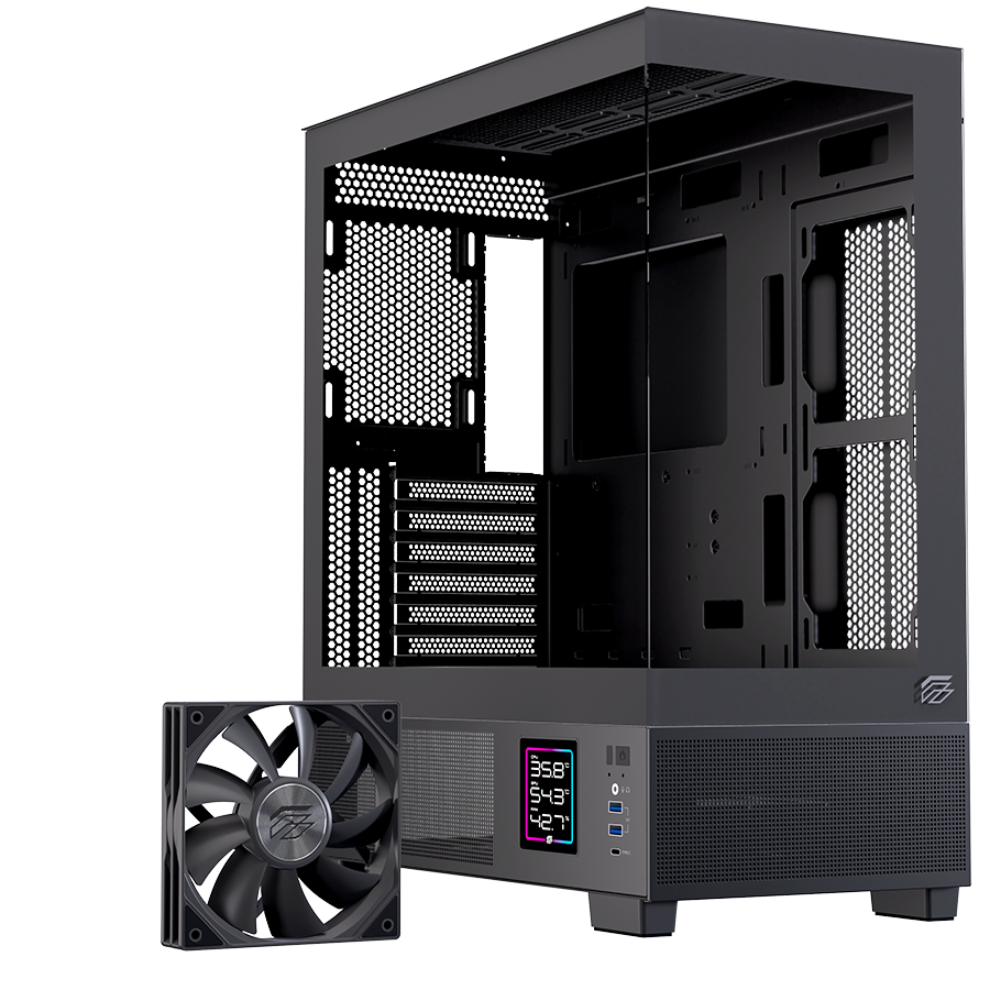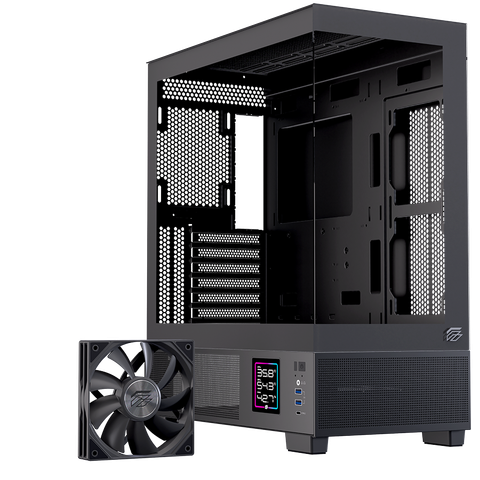 EINAREX PRISMA S501D là mẫu case Mid-Tower cao cấp dành cho người dùng yêu cầu cả thẩm mỹ trình diễn linh kiện lẫn tính năng giám sát hệ thống thông minh. Sở hữu thiết kế panoramic toàn cảnh bằng kính cường lực, kết hợp màn hình hiển thị kỹ thuật số bên hông, S501D mang đến trải nghiệm build PC đẳng cấp, hiện đại và khác biệt.