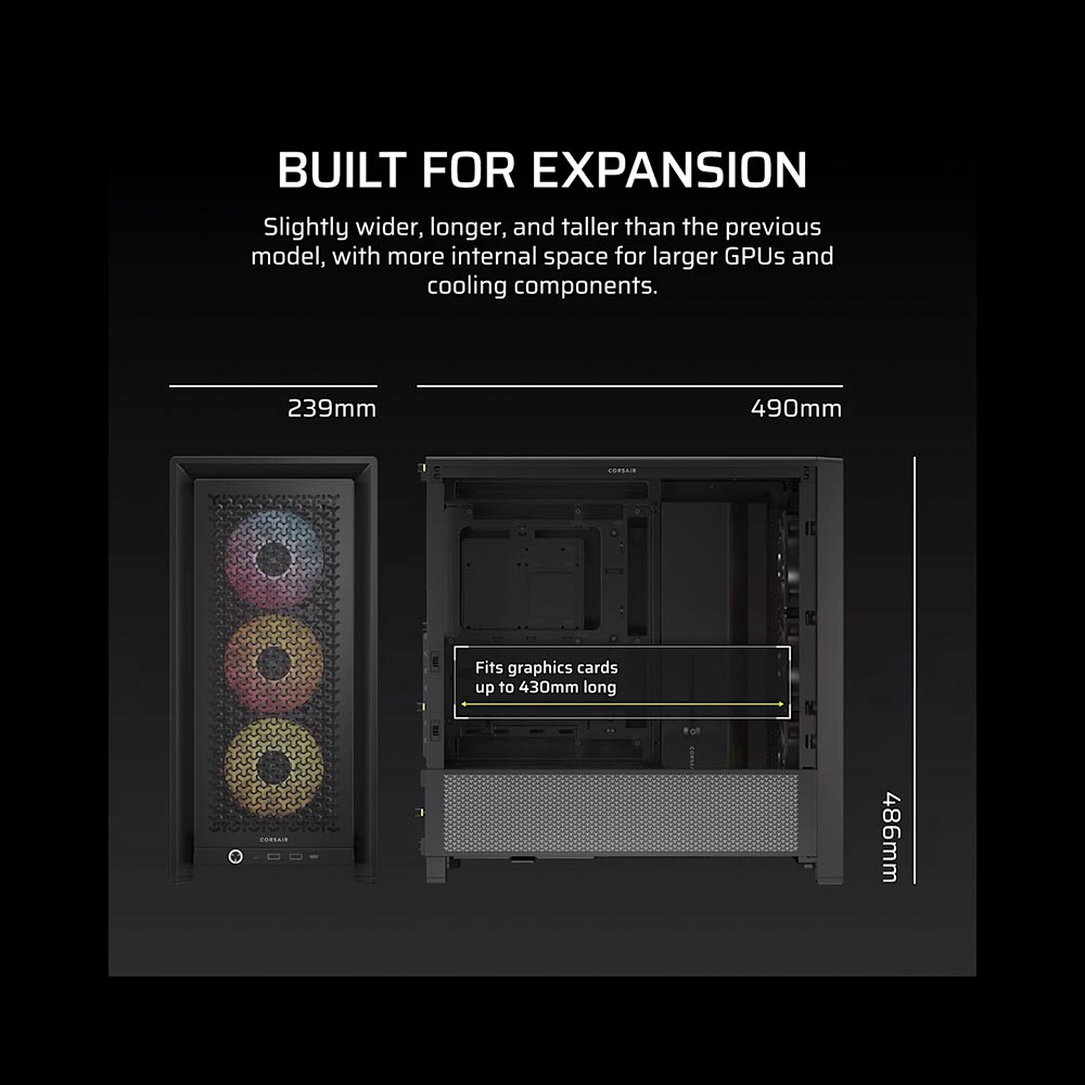 Với khả năng hỗ trợ đồng thời hai radiator 360mm ở mặt trước và phía trên, Corsair FRAME 4000D RS ARGB Airflow Black đảm bảo hiệu suất tản nhiệt vượt trội cho hệ thống của bạn. Điều này đặc biệt quan trọng đối với các cấu hình cao cấp, yêu cầu khả năng làm mát mạnh mẽ để duy trì hiệu suất ổn định trong suốt quá trình hoạt động.