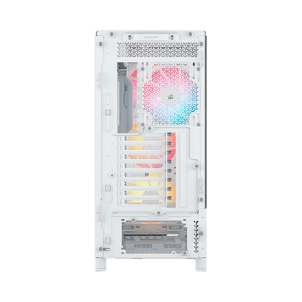 Corsair FRAME 5000D RS ARGB Airflow White CC-9011310-WW đi kèm sẵn 4 quạt RS140 ARGB PWM chất lượng cao, sử dụng vòng bi từ tính cho độ bền vượt trội và tiếng ồn cực thấp. Các quạt có khả năng daisy-chain (kết nối nối tiếp) giúp việc đi dây gọn hơn, thuận tiện hơn trong lắp đặt và quản lý hệ thống. Hệ thống ánh sáng ARGB nổi bật có thể đồng bộ với các thiết bị Corsair qua iCUE, tăng tính đồng bộ và thẩm mỹ cho toàn bộ dàn máy. Ngoài ra, bạn còn có thể sử dụng phần panel bên hông như giá gắn quạt phụ để tăng thêm luồng gió khi cần.