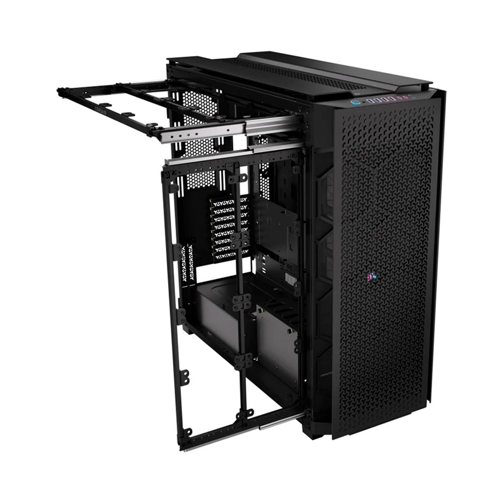 Corsair 9000D sử dụng hệ thống InfiniRail™ cho phép lắp đặt quạt theo bất kỳ vị trí mong muốn ở mặt trước và phía trên, giúp tối ưu luồng khí theo nhu cầu sử dụng và đảm bảo khả năng tản nhiệt hiệu quả cho hệ thống của bạn.