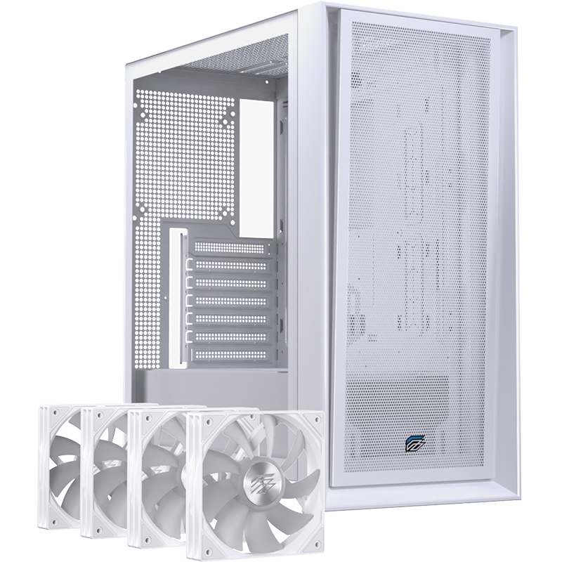 Một trong những điểm mạnh khiến vỏ case EINAREX P600 RGB White được ưa chuộng chính là khả năng tản nhiệt. Ngay khi mua, người dùng đã có sẵn 3 quạt RGB mặt trước và 1 quạt RGB phía sau, tạo luồng gió lưu thông hiệu quả. Bên cạnh đó, bạn có thể nâng cấp thêm nhiều vị trí quạt: