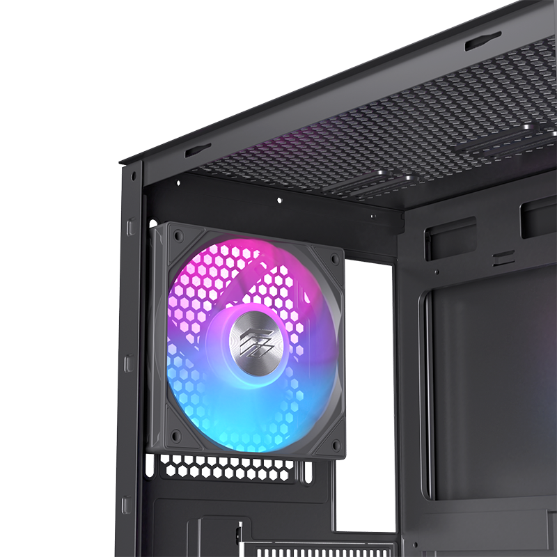 Ngay khi mua, người dùng đã có sẵn 2 quạt RGB phía trước và 1 quạt RGB phía sau giúp cải thiện lưu thông khí. Ngoài ra, case hỗ trợ lắp đặt thêm quạt hoặc tản nhiệt nước với kích thước:
