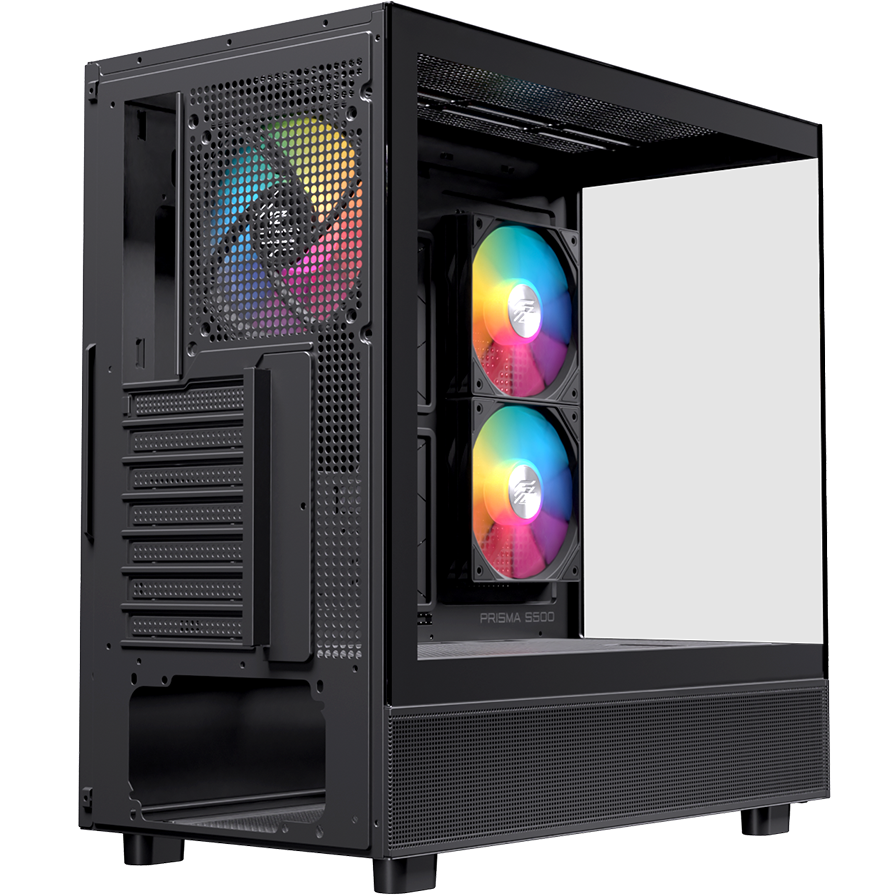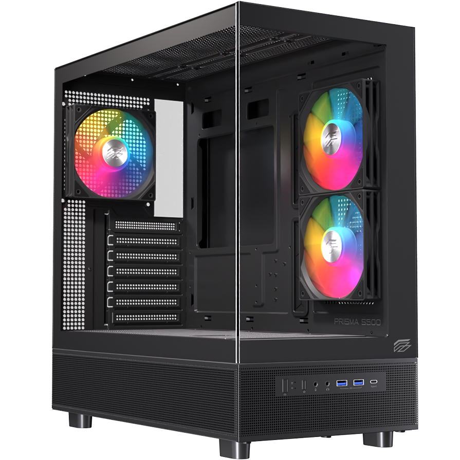 Vỏ máy tính EINAREX S500 RGB Black (Mini Tower/ M-ATX/ Đen) sở hữu dáng vẻ nhỏ gọn với kiểu dáng Mini Tower, rất phù hợp cho những không gian làm việc hoặc bàn gaming hạn chế diện tích. Màu đen chủ đạo kết hợp cùng mặt kính cường lực trong suốt giúp phô diễn toàn bộ linh kiện bên trong, mang đến vẻ ngoài sang trọng và đậm chất gaming.