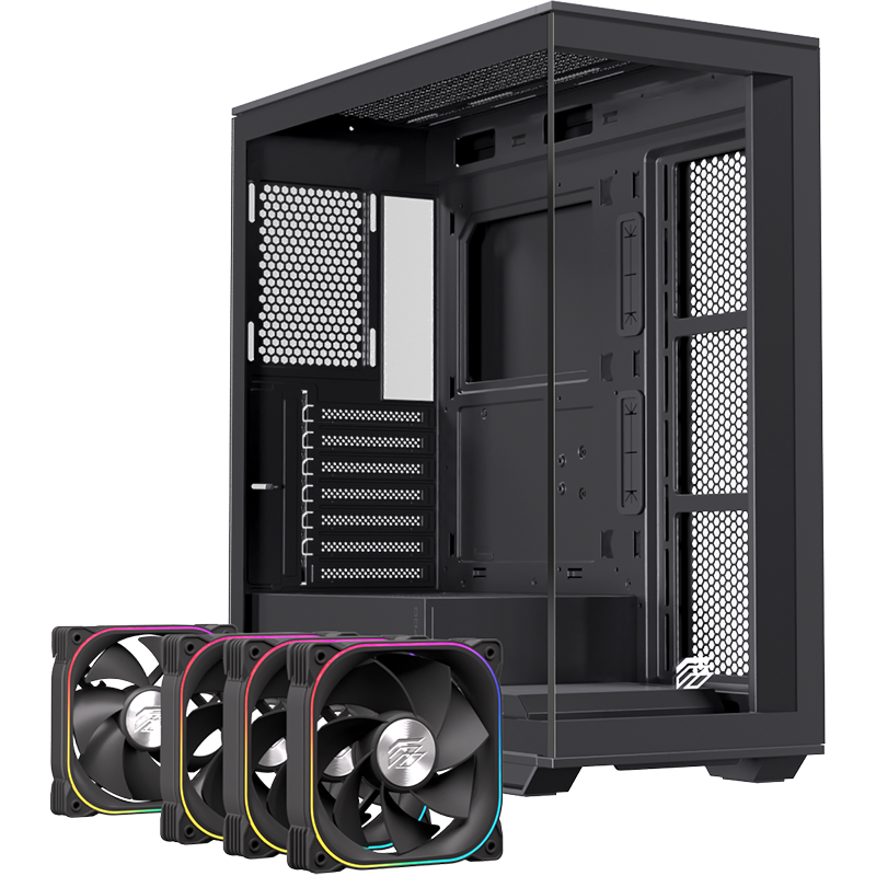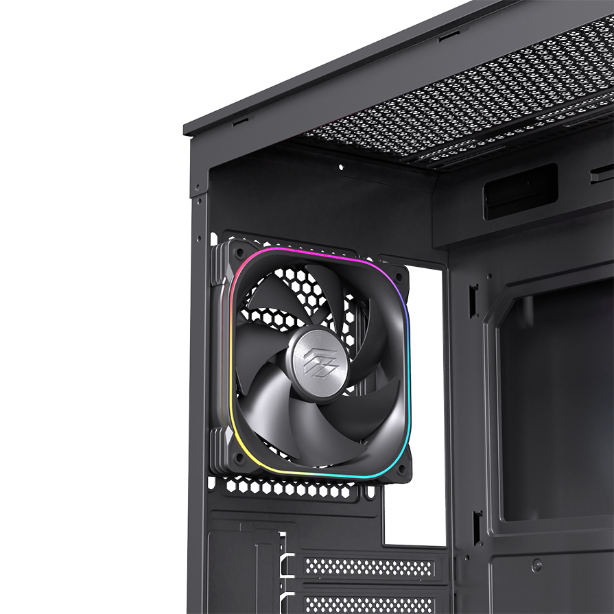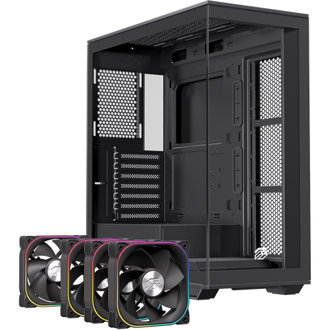 Điểm nổi bật nhất của EINAREX S700 RGB Black chính là khả năng tản nhiệt vượt trội. Case được trang bị sẵn 3 quạt RGB bên hông và 1 quạt RGB phía sau, tạo hiệu ứng ánh sáng đẹp mắt và luồng gió đối lưu hiệu quả. Người dùng có thể mở rộng thêm với: