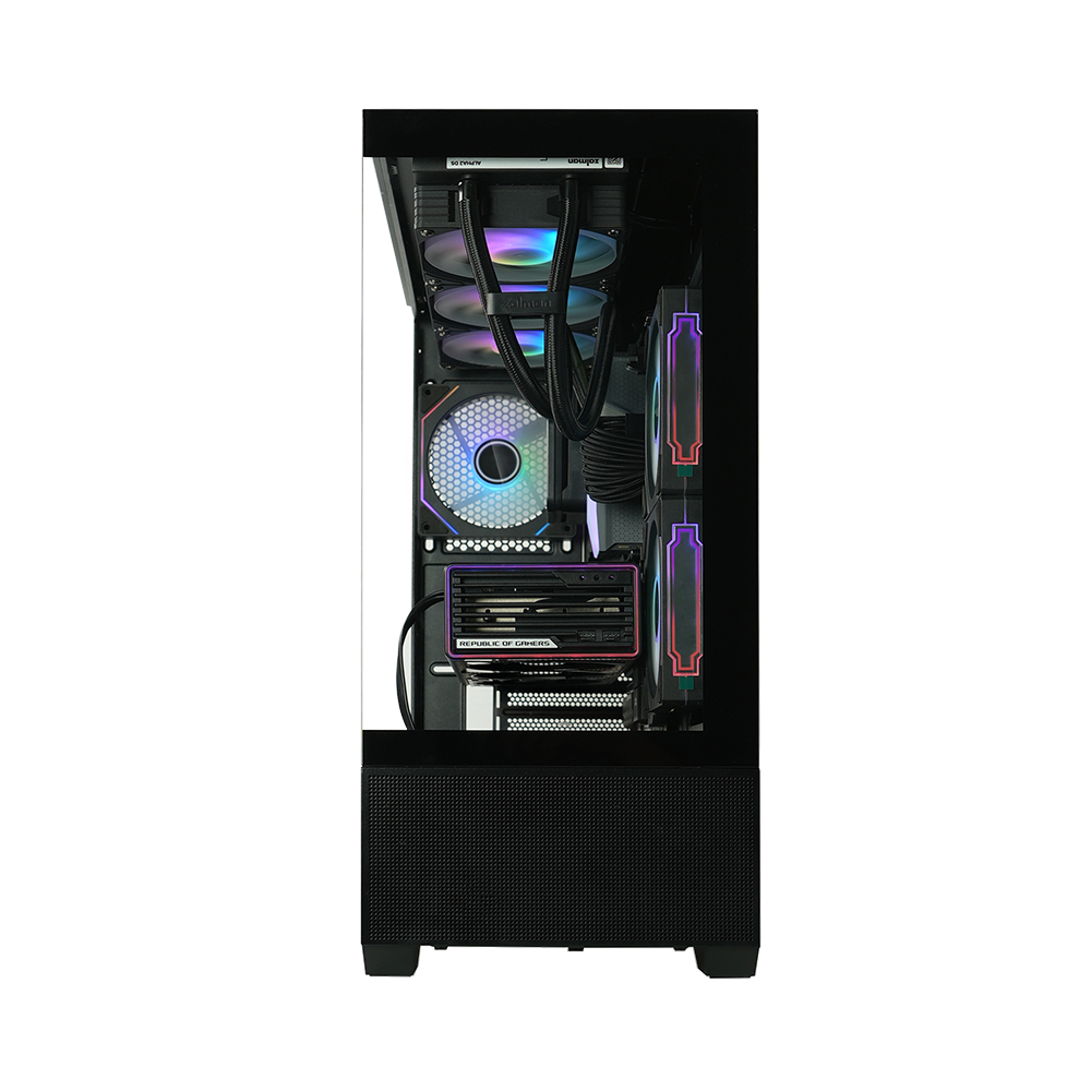 Case được trang bị panel kính cường lực trong suốt, cho phép người dùng dễ dàng khoe toàn bộ linh kiện và hệ thống RGB bên trong. Khung case sử dụng thép, nhựa và kính cường lực, mang lại độ bền cao và vẻ ngoài hiện đại.