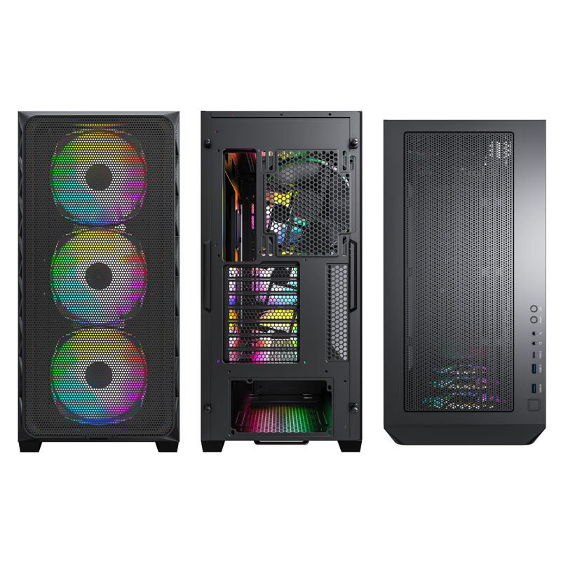 Mặt trước của case được thiết kế với lưới kim loại có tỉ lệ thông gió lên đến 51%, tăng cường luồng không khí và hiệu suất làm mát cho hệ thống.