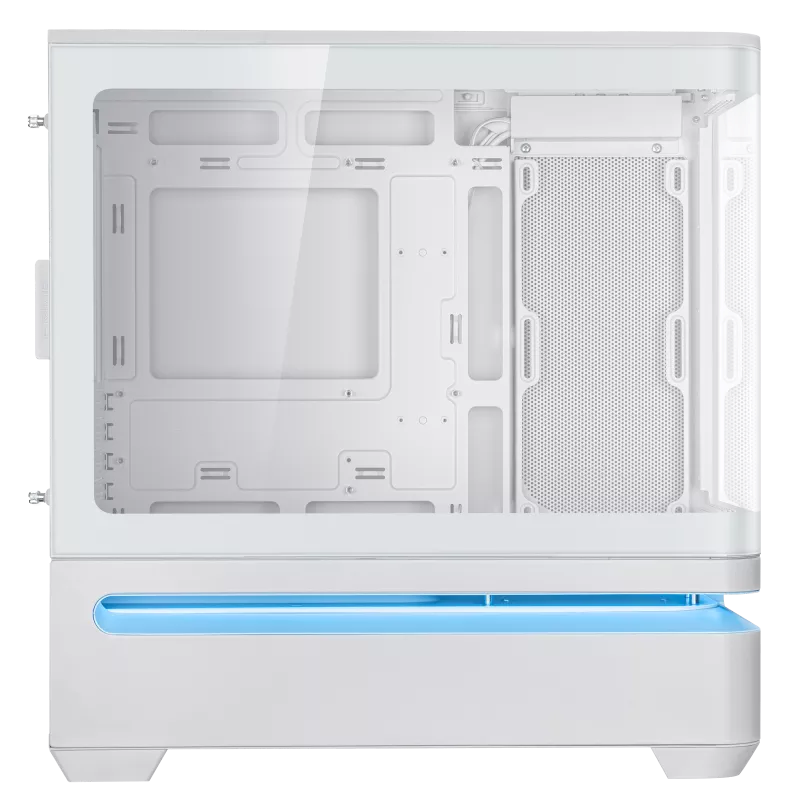 Điểm nhấn đầu tiên không thể bỏ qua chính là thiết kế mặt trước và mặt hông từ kính cường lực cong chất lượng cao cấp – được xử lý đạt chuẩn hàng không, cho hiệu ứng ánh sáng hoàn hảo và góc nhìn linh kiện toàn cảnh sắc nét. Tông màu trắng sang trọng phối hợp hài hòa với ánh sáng RGB, mang lại tổng thể tinh tế và hiện đại, lý tưởng cho những ai yêu thích thẩm mỹ thanh lịch trong build PC cá nhân.
