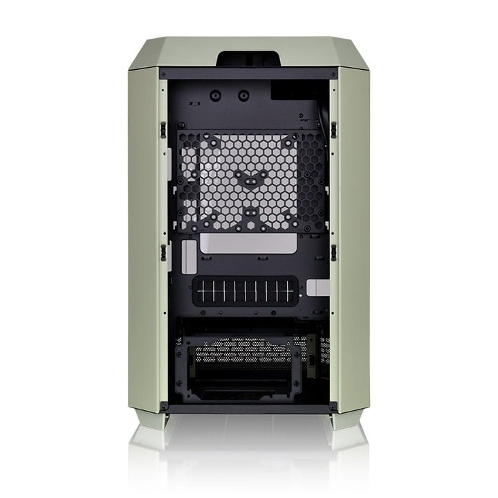 Thermaltake Tower 300 có hỗ trợ phần cứng tốt. Hỗ trợ bộ làm mát CPU có chiều cao tối đa 210mm, GPU có chiều dài tối đa 400mm (không có nắp nguồn), bộ cấp nguồn có chiều dài lên tới 220mm, ba ổ SSD 2,5” hoặc ba ổ cứng 3,5” tổng cộng. Hai quạt CT140 được lắp sẵn phía trên thùng máy để cải thiện hiệu suất tản nhiệt. Có thể lắp thêm một quạt 120mm hoặc 140mm phía trên nắp PSU và có thể lắp bộ làm mát CPU AIO lên đến 420mm/360mm ở phía bên phải của vỏ để có hiệu suất làm mát tối đa.