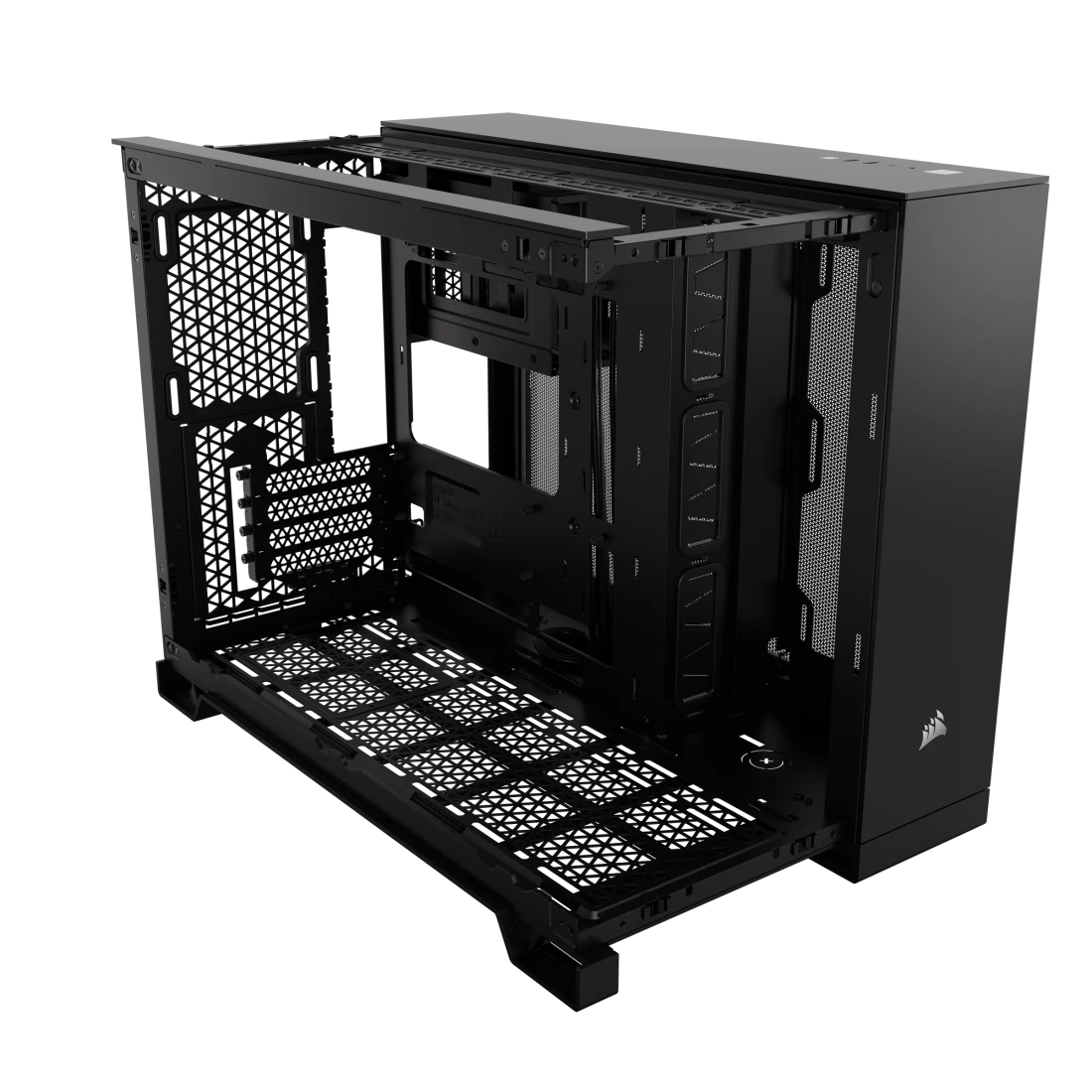 Tự do lựa chọn sắp xếp linh kiện Corsair 2500X Tempered Glass từ trong ra ngoài: chọn thiết lập làm mát của bạn, chọn nhiều kính hơn để trưng bày các bộ phận của bạn hoặc cấu hình luồng khí tinh tế hơn – không chỉ có màu đen hoặc trắng.